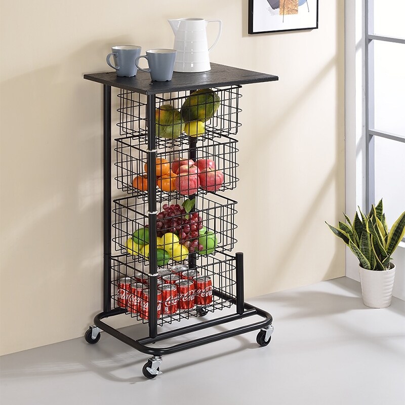 Keranjang penyimpanan bergulir logam sangat bagus untuk menyimpan makanan, desain 4 tingkat memiliki kapasitas penyimpanan yang besar. Keranjang penyimpanan berputar dapur mengadopsi bingkai logam berkualitas tinggi dalam lapisan hitam matte, dengan papan MDF yang dapat menampung mug atau piring.
